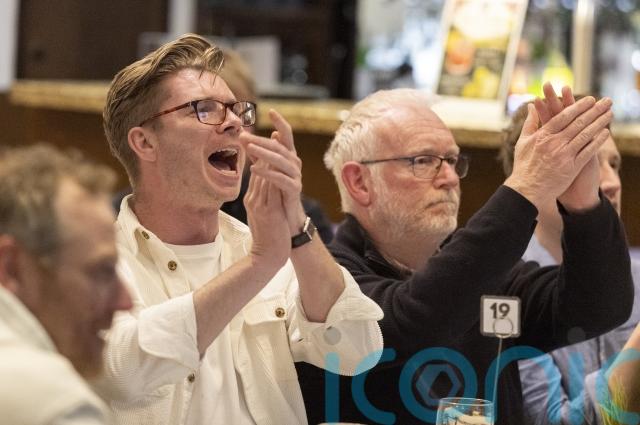 Tables filled up early in the night, following a Sunday roast, with around 150 people cheering on the hometown hero.