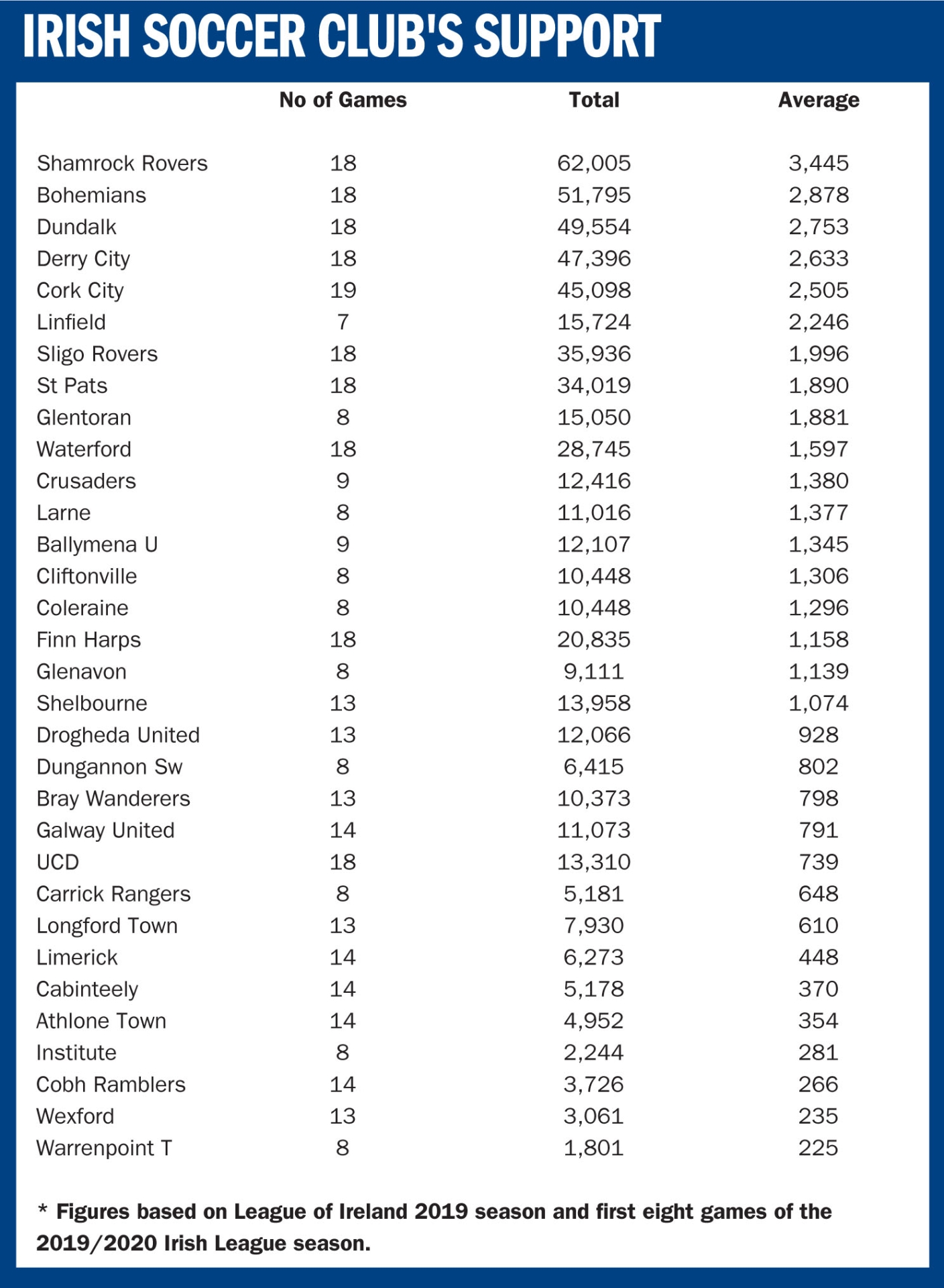 Interestingly, though, there are also details that take in Irish League attendances which give an indication as to the support of clubs when compared on the island of Ireland.