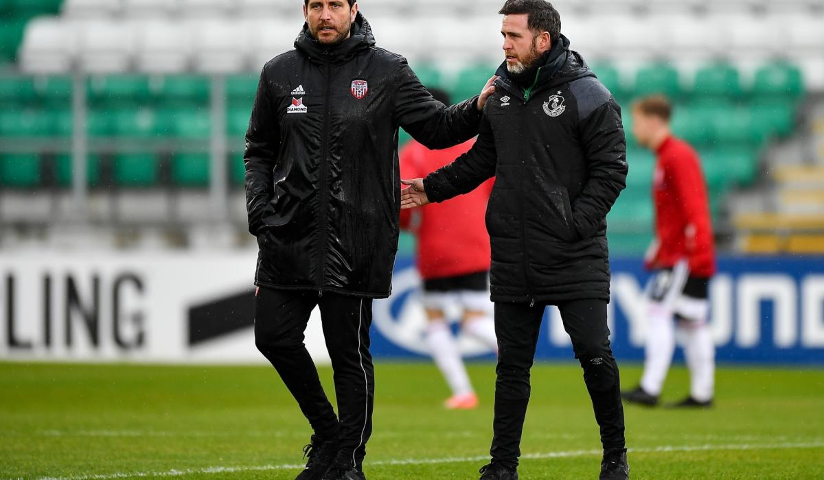 Derry City manager Ruaidhri Higgins and Shamrock Rovers manager Stephen Bradley.