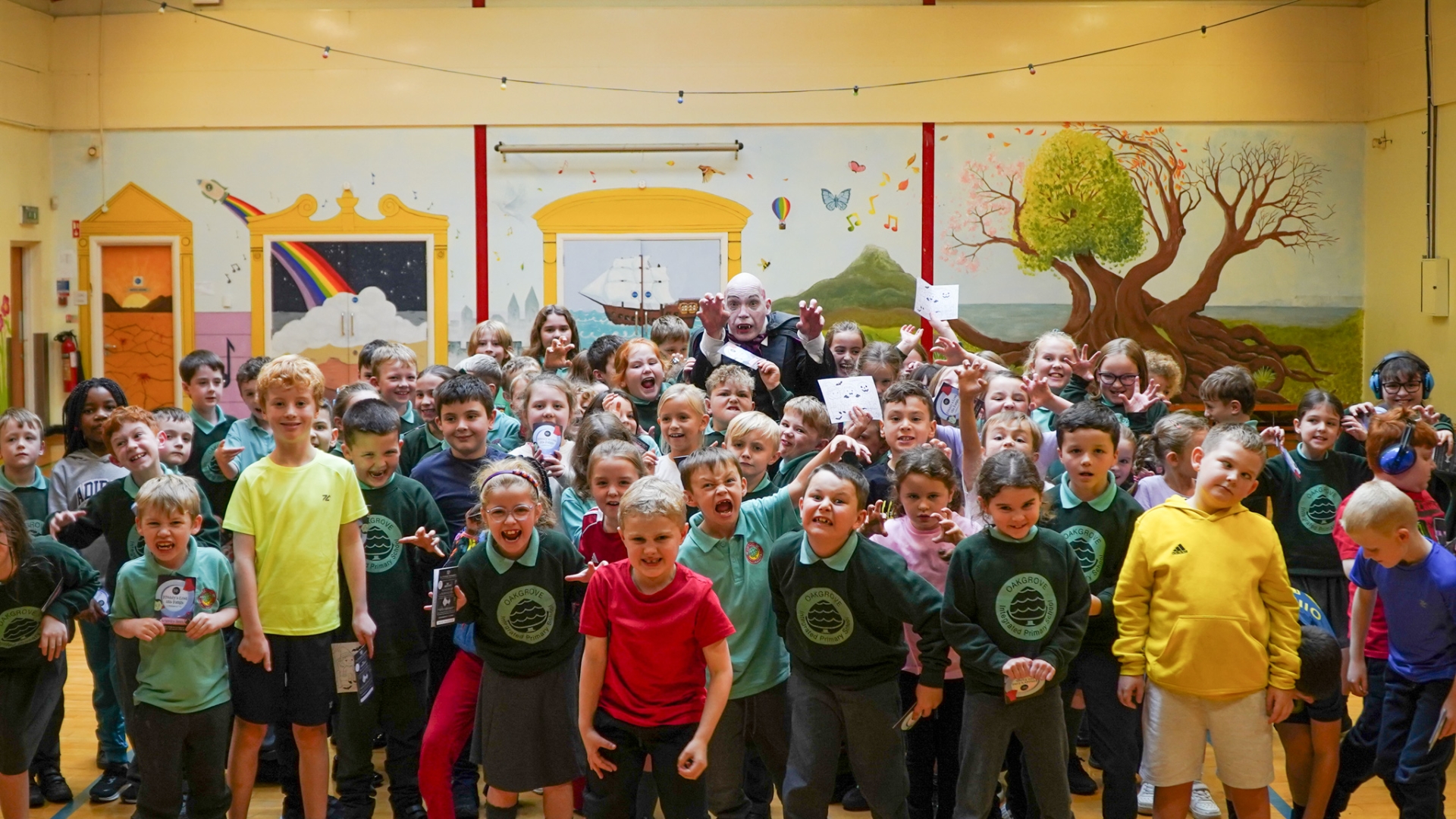 Great Granda Vlad, a character from Freddy’s Lost His Fangs, entertaining pupils at Oakgrove Primary School and Sacred Heart Primary School.