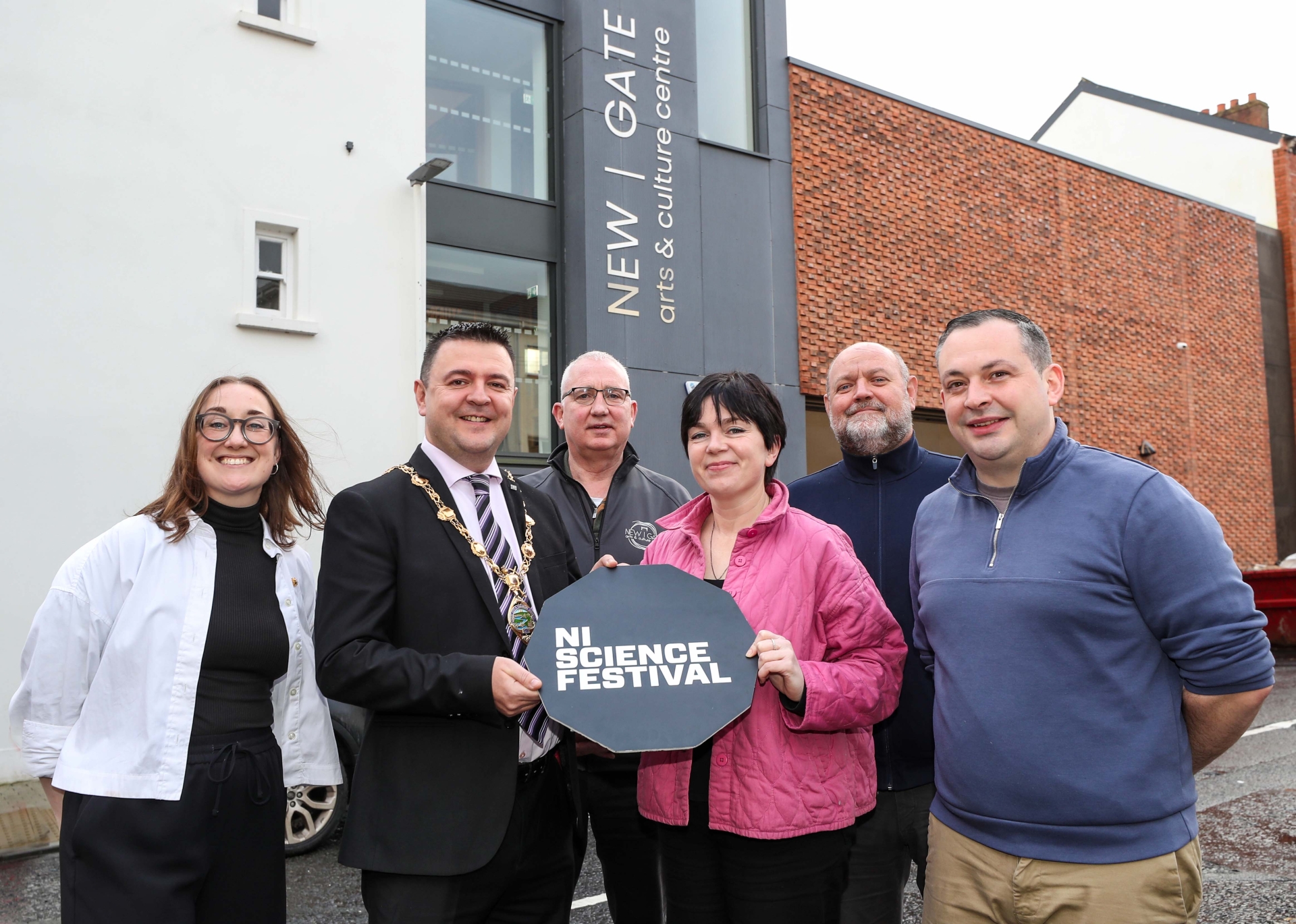 Left to right, Stephanie Garner, project & events officer, NI Science Festival, Mayor of Derry and Strabane, Councillor Ruairi McHugh, Brian Dougherty, CEO New Gate Arts & Culture Centre, Sarah Jones, director of NI Science Festival, Richard Laird, Social Value Co-ordinator, New Gate Arts & Culture Centre and Darren Milligan, Creative Programming Executive, New Gate Arts & Culture Centre.
