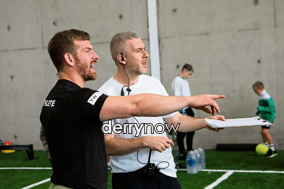 Event organisers keeping a close eye on competitors taking part in the Maiden City Hyrox event held in Sean Dolans GAA Club. (Photos - Tom Heaney, nwpresspics)