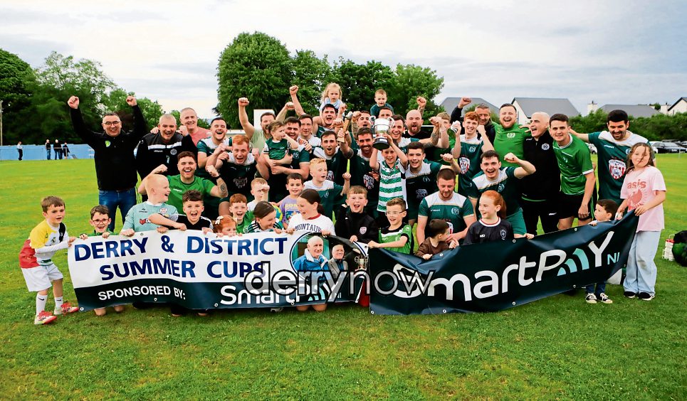 Foyle Harps team celebrating winning the D&D McAlinden Cup beating Brassnecks in the final at Wilton Park. (Photos - Tom Heaney, nwpresspics)