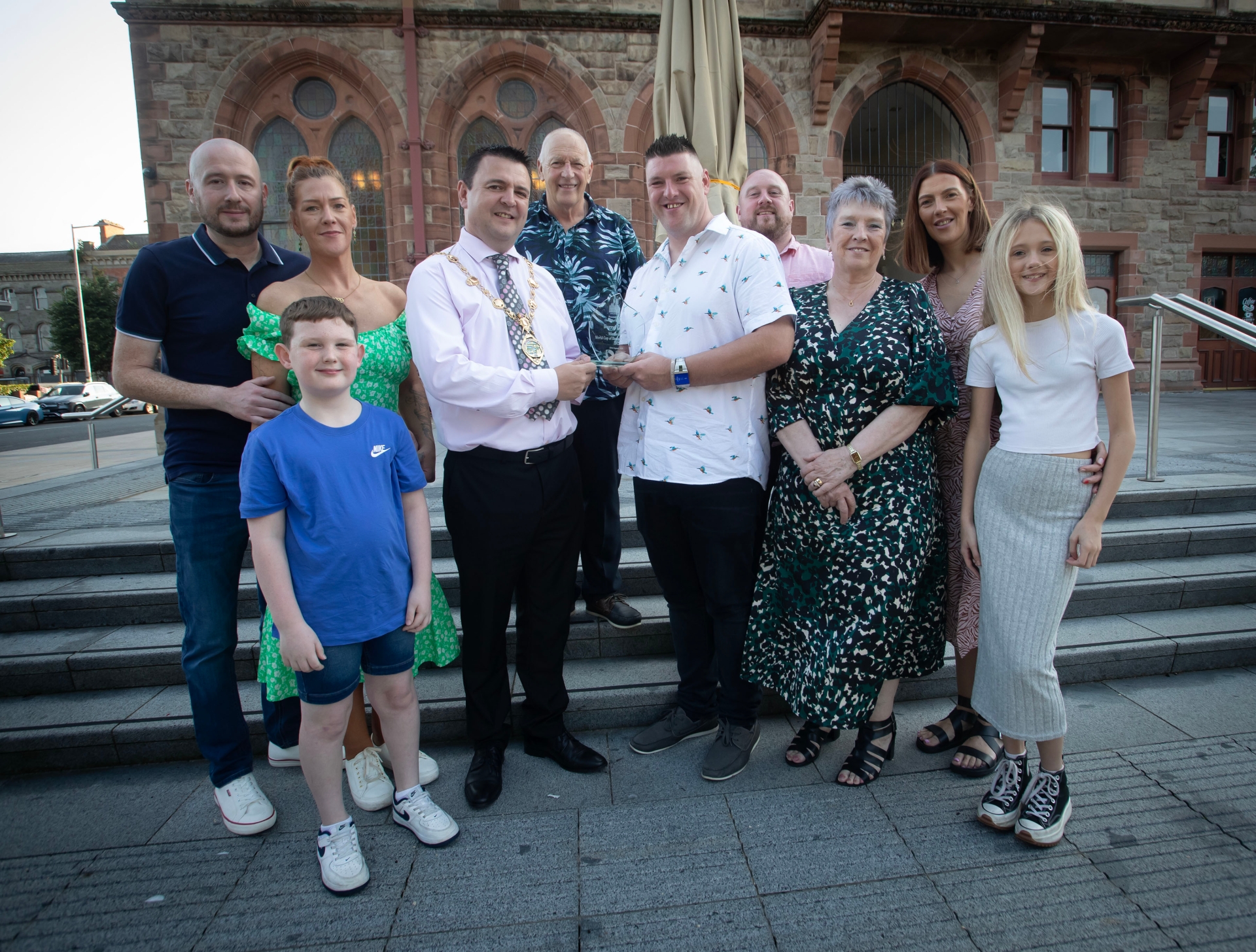DARYL GURNEY HONOURED. . . .The Mayor, Ruairi McHugh made a special presentation to darts player Daryl Gurney to mark his success at the World Cup of Darts Championships 2025 during a reception in the Guildhall, Derry on Wednesday evening. Included are Daryl's friends and family. (Photos: Jim McCafferty Photography)