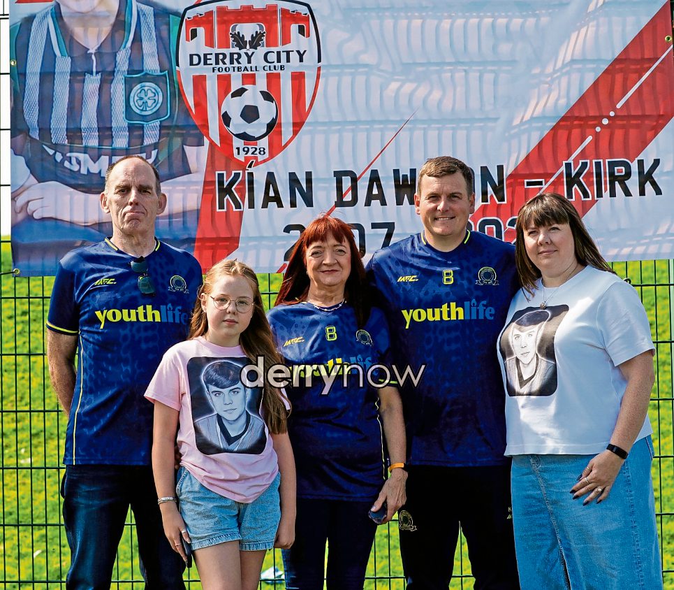 The parents and sister of Kian Dawson Kirk at a the Memorial Cup held in Leafair. Emmett Kirk, Fiona Dawson and Abaigael Dawson. Grandparents Michael and Michelle Dawson. (Photos - Tom Heaney, nwpresspics)
