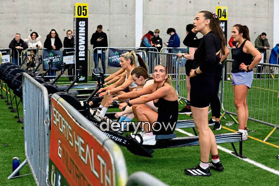 Contestants taking up their position in the rowing at the Maiden City Hyrox event.