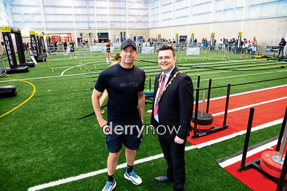 Mayor Ruairí McHugh with event organiser Vinny Sweeney at the Maiden City Hyrox event held in Sean Dolans.