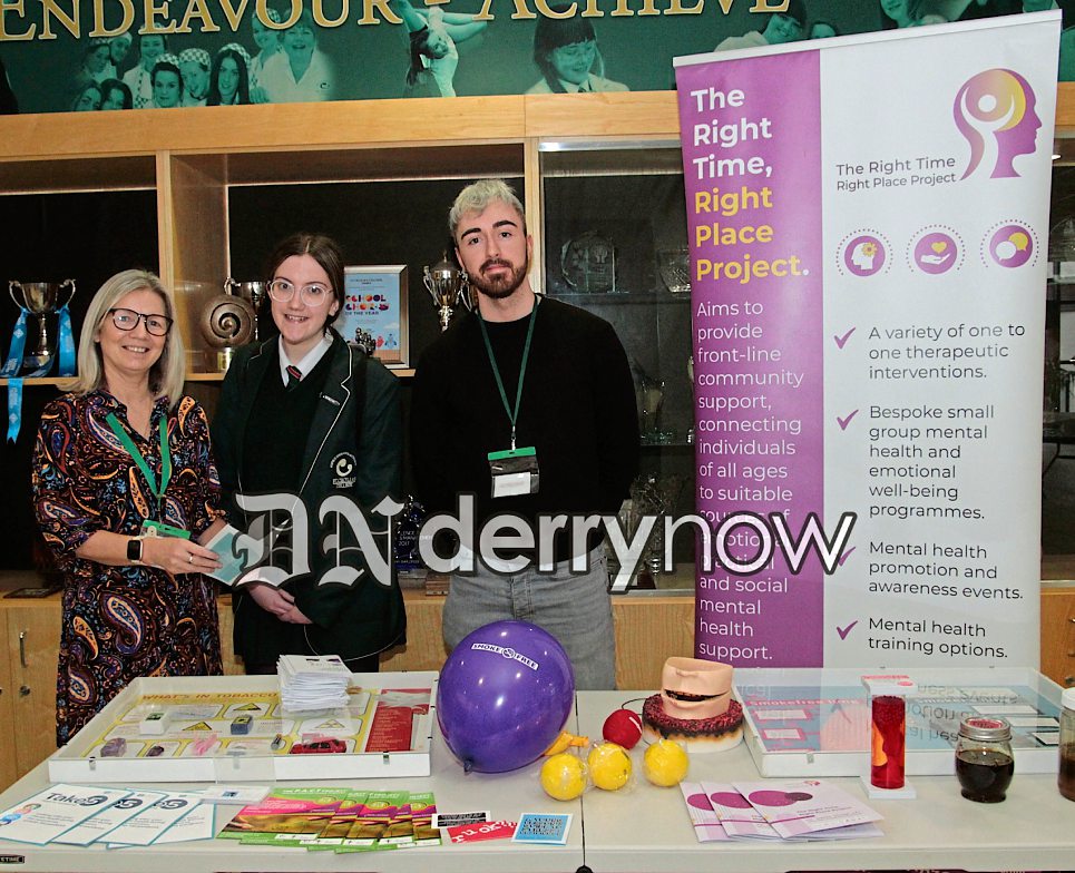 Maeve Coyle, 11 Hope pictured at St. Cecilia's College Positive Health Day with Kerry Abel, CBT Therpist and Sean Layden, Mental Health Practitioner.