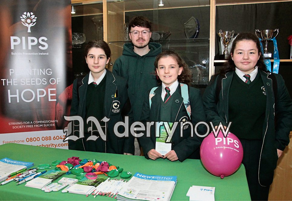 Shea Doherty, PIPS Associate pictured with St. Cecilia's College pupils Mia Donnelly, Megan Redfern and Rhama Roberts.