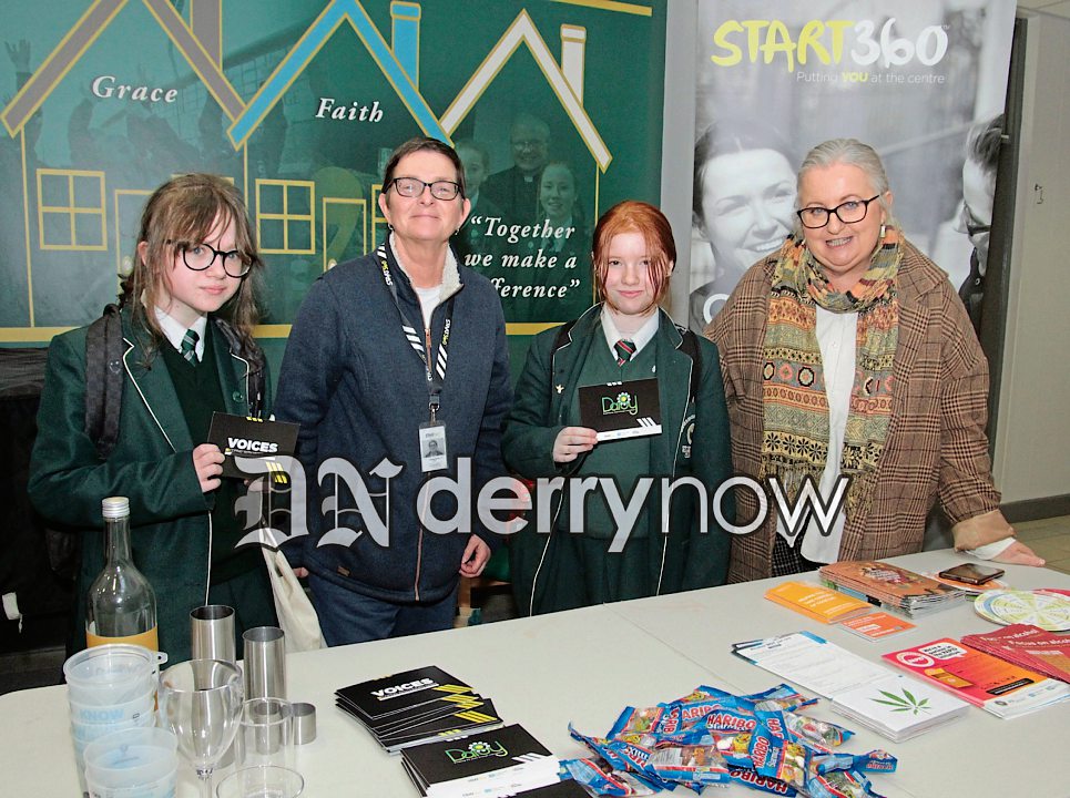 Year 8, Hope 2 pupils, Eva Burke and Saoirse O'Hagan chat with Carmel Burns ad Gerri O'Kane Start 360.