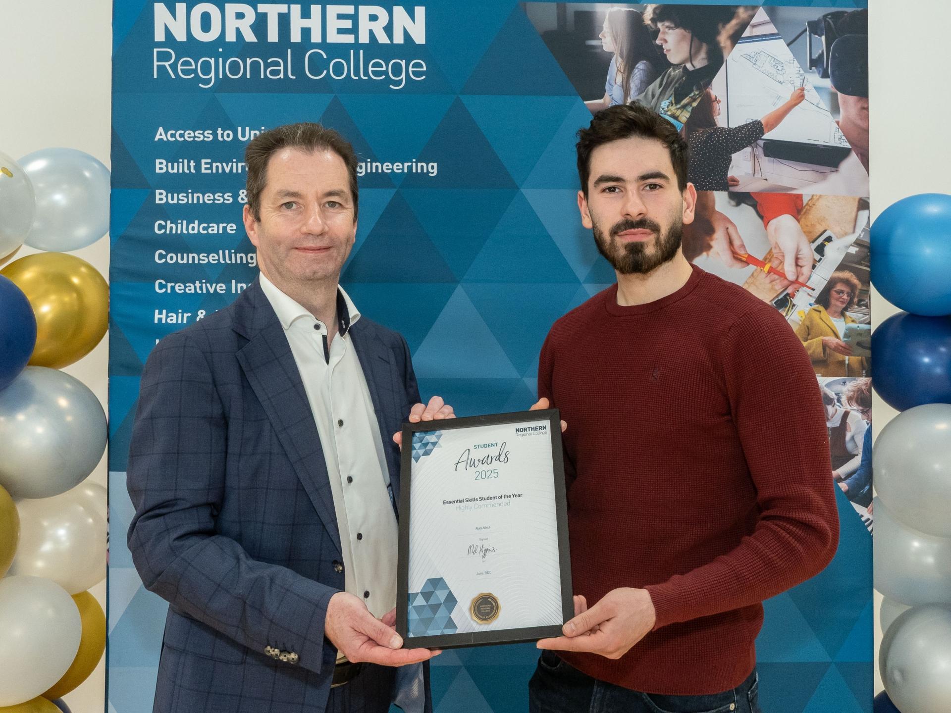 Alaa Alkidi, highly commended in the Essential Skills Student of the Year with Mel Higgins, Principal & Chief Executive at the College’s Student Recognition Awards.