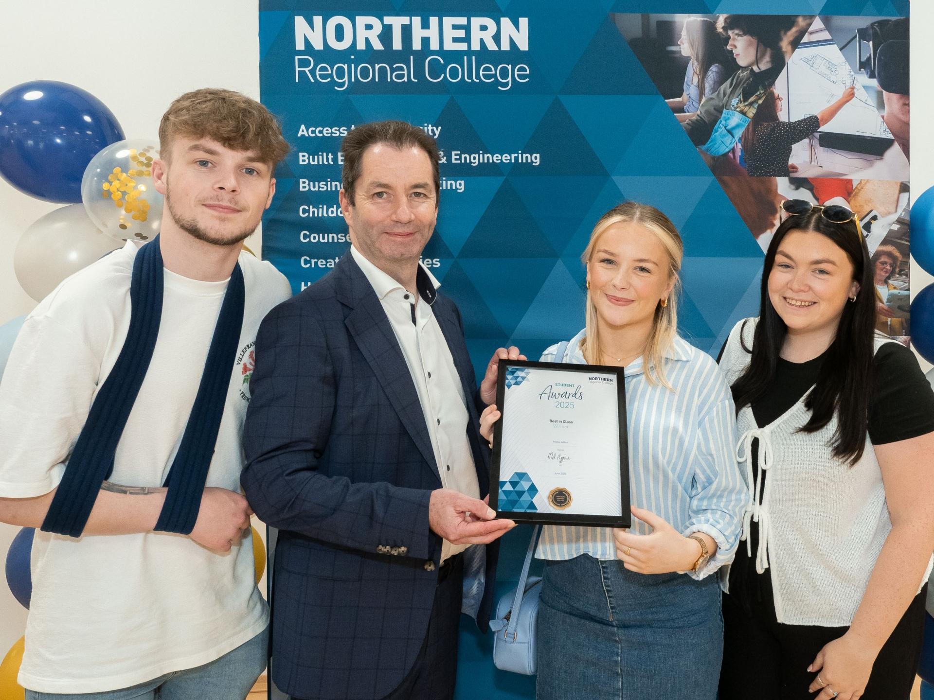 Winner in the Best in Class category, Performing Arts student Molly Arthur pictured with Mel Higgins, College Principal & Chief Executive and her family Kane Arthur and Robin Arthur.