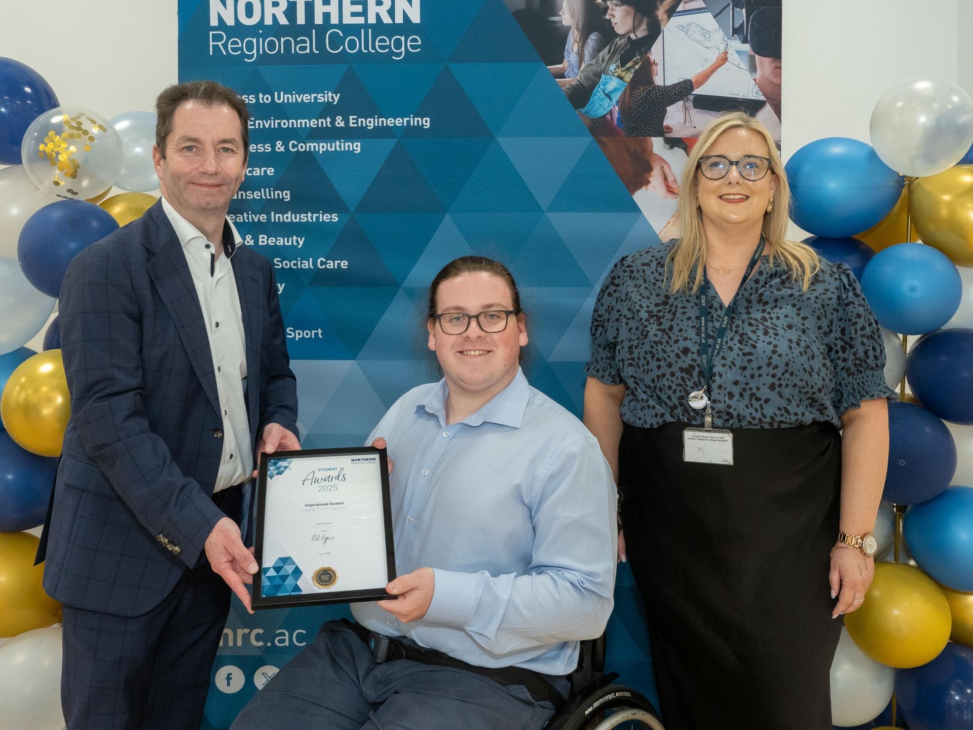 Marc McGarel, Highly Commended in the Inspirational Student category, pictured with his lecturer Erin McKirgan and Mel Higgins, Principal & Chief Executive.