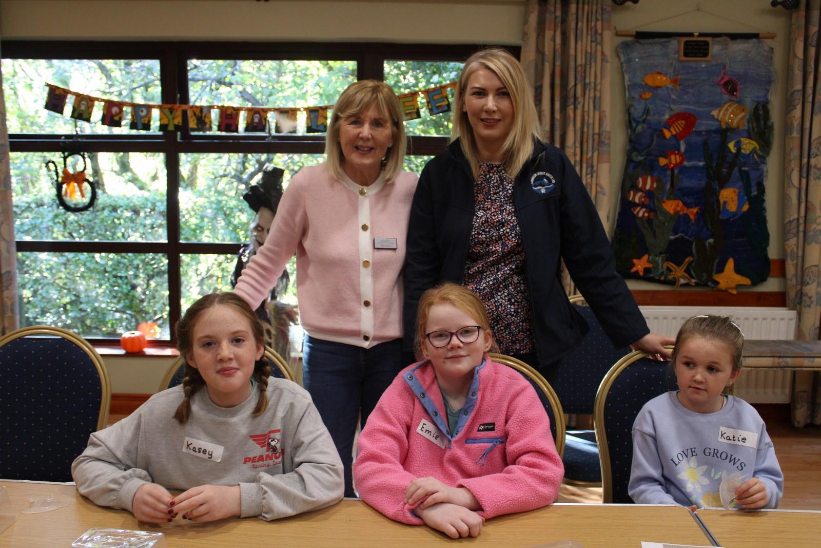 Kasey, Emie and Katie pictured with granny Roisin and Michelle from sponsor, Carnglen Credit Union.
