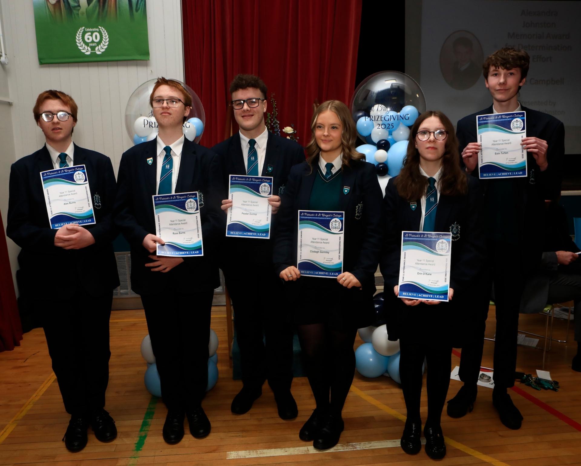 Year 11 attendance achievers, from left, Alex Burns, Russ Burns, Peadar Dunlop, Clodagh Gormley, Erin O'Kane and Eoin Turton.