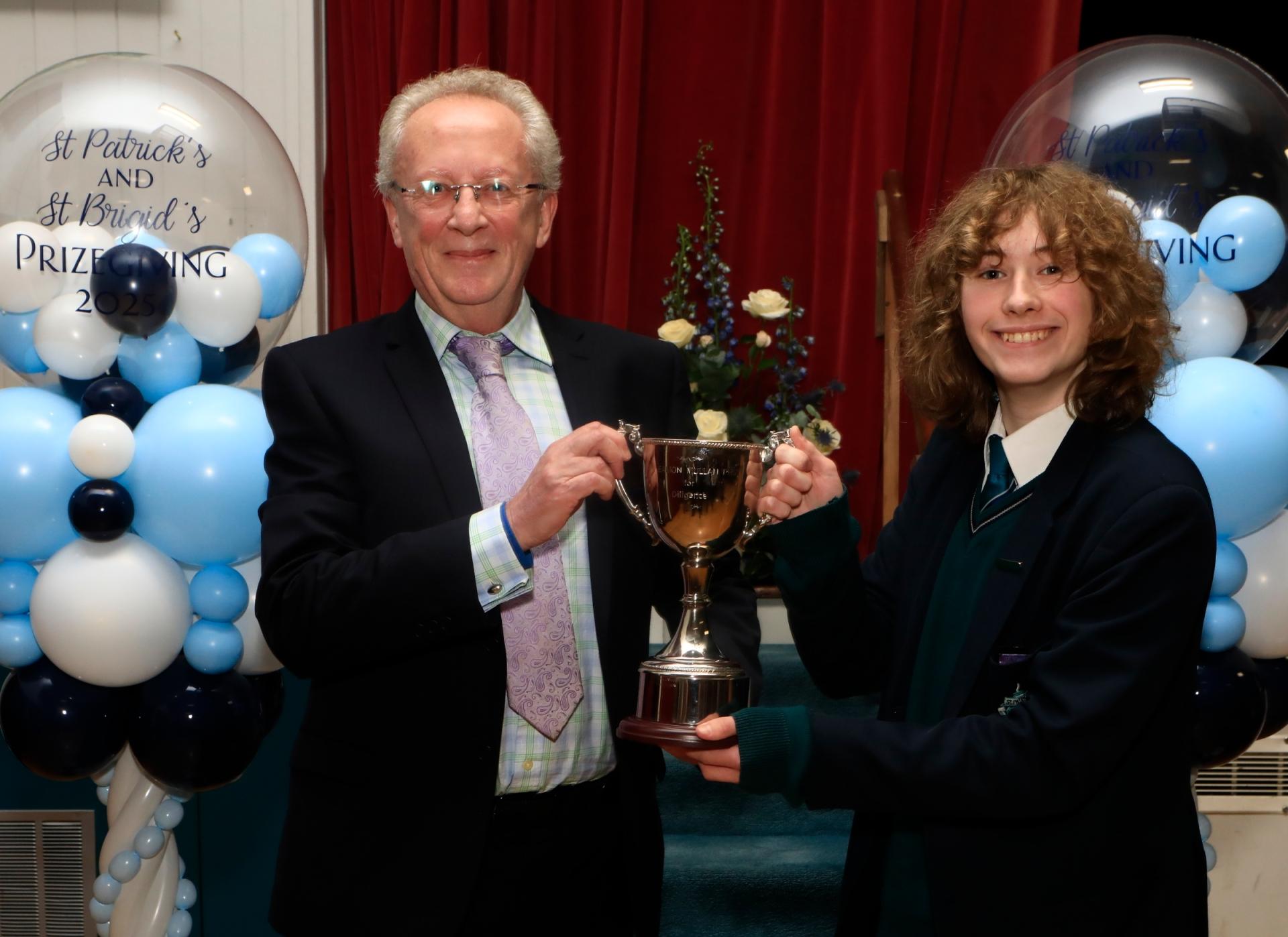 Eamon Mullan presents the Eamon Mullan Prize for Diligence to Cormac O'Kane.