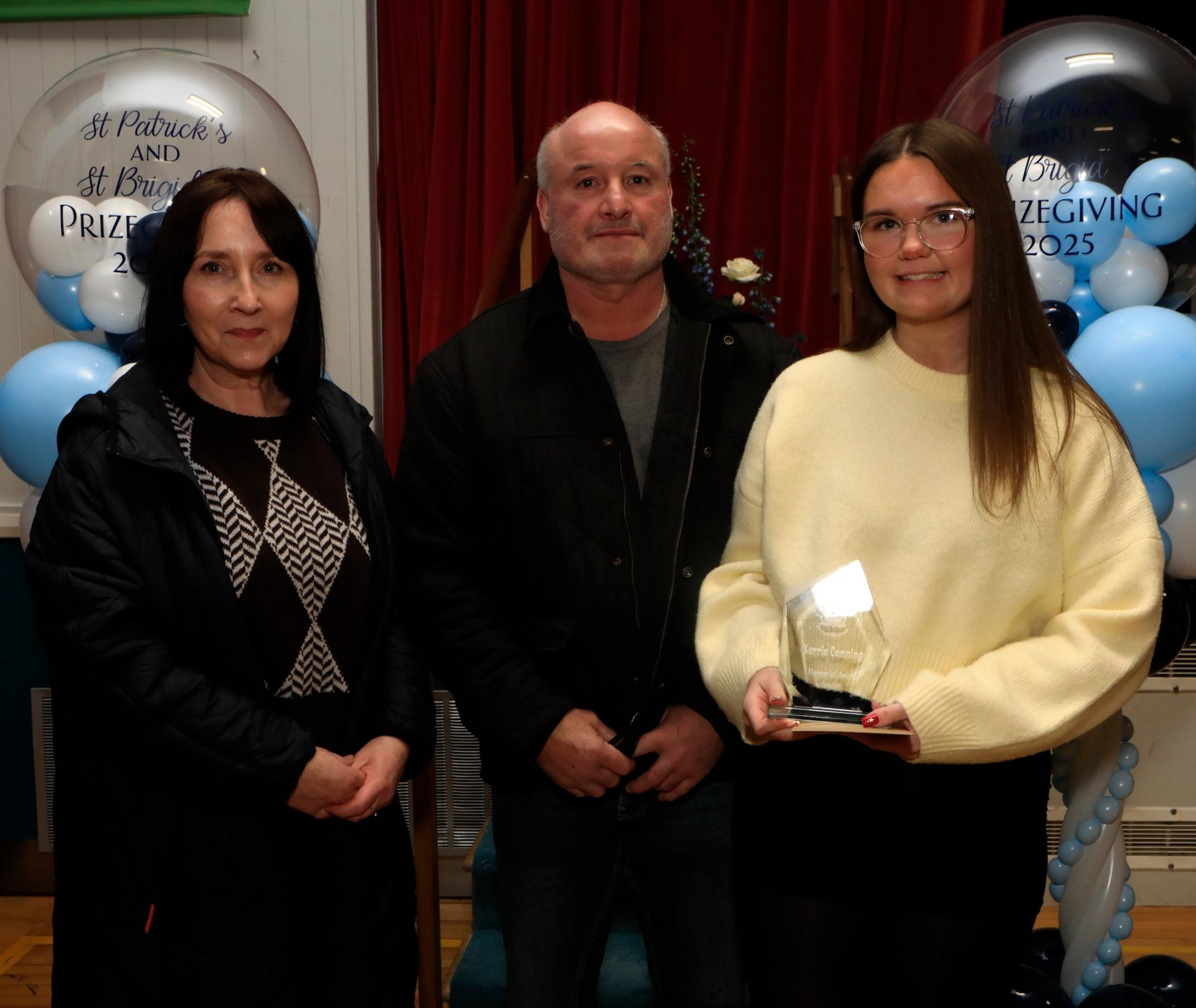 Mr. and Mrs. Canning presents the Kerrie Canning Memorial Award for Contribution to Art (KS4) to Ella Rose Moore.