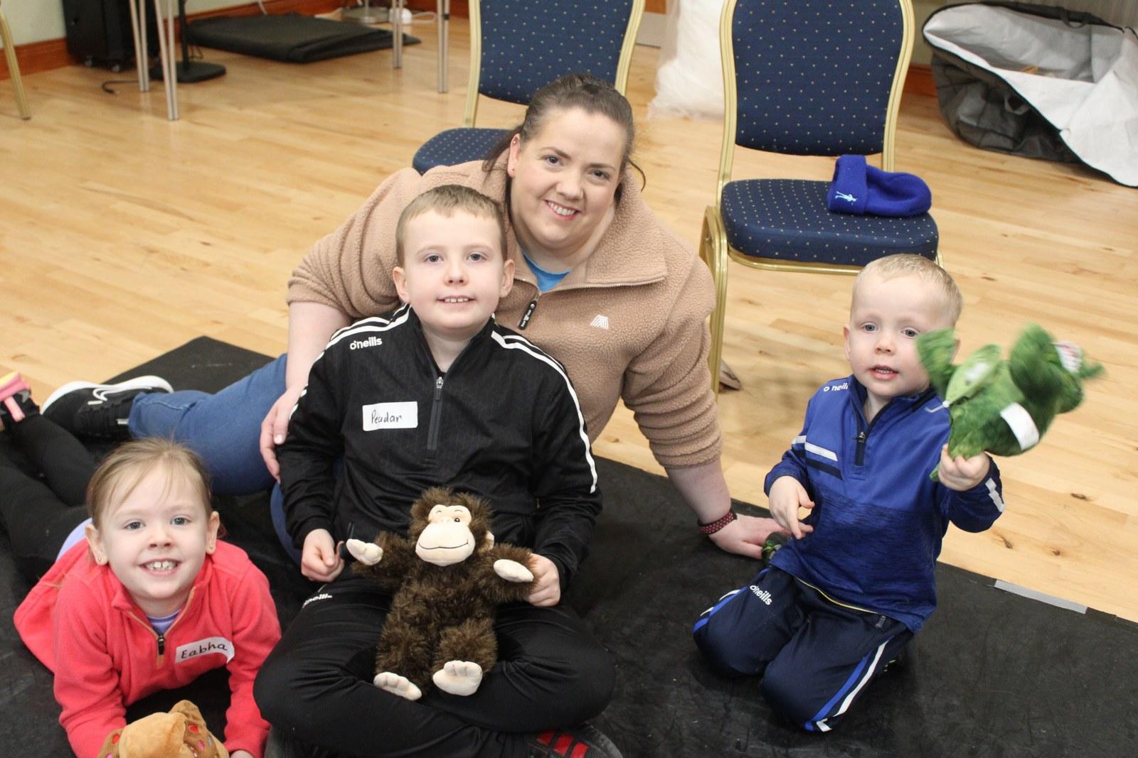 Eabha with brothers Dáithí and Peadar along with mum Leanne, really enjoying the crafty teddies session which was made posiible by funding from the PHA via Clear.