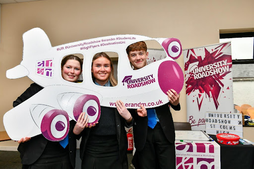 Pupils and staff from St Colm's pictured at the University Roadshow which was held in the school.