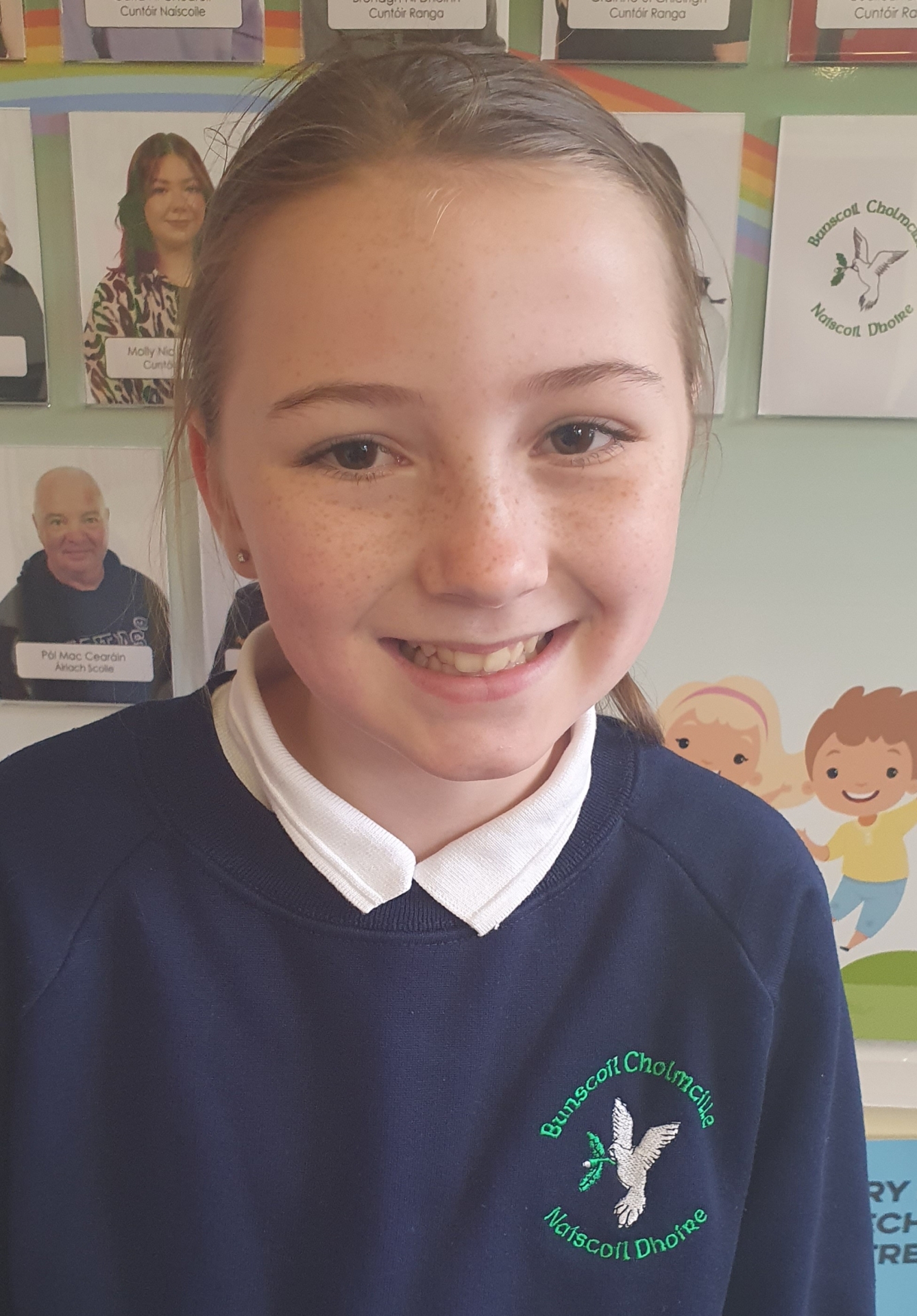 Is í ár scoil an scoil is fearr mar tá na múinteoirí is fearr againn, a dhéann an fhoghlaim spraiúil. Foghlaimímid trí chluichí a imirt agus amhráin a cheol agus níl aon lá leadránach againn ar scoil.