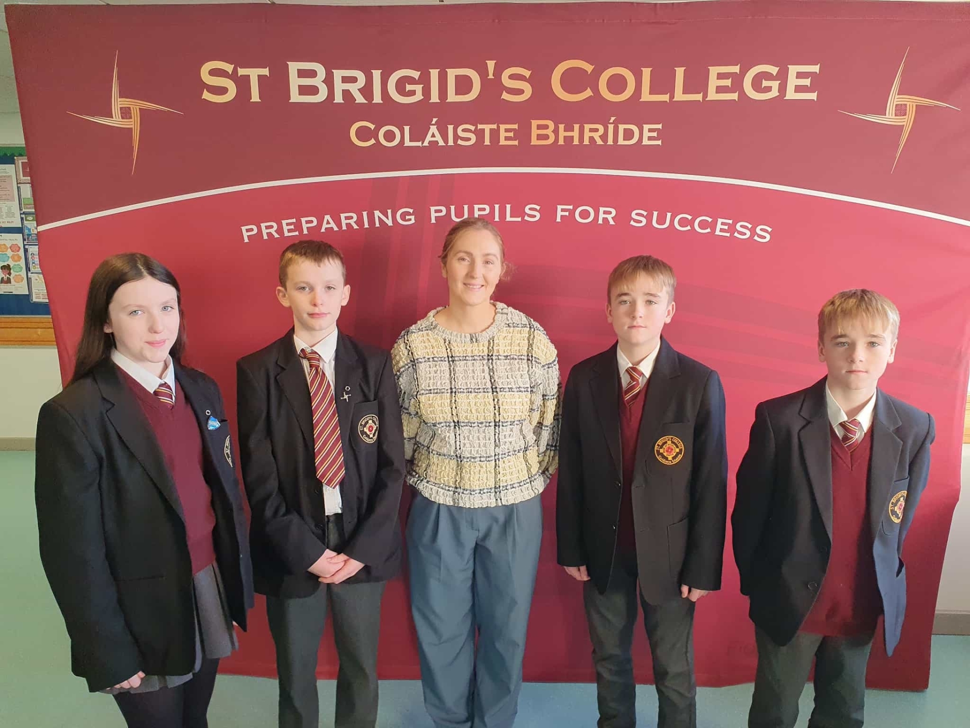 St Brigid's College Coláiste Bhríde Irish Unit B8 twins - Eadaoin, Cathaol, Ultán and Seadanta with Maistreas Ní Mhuirí