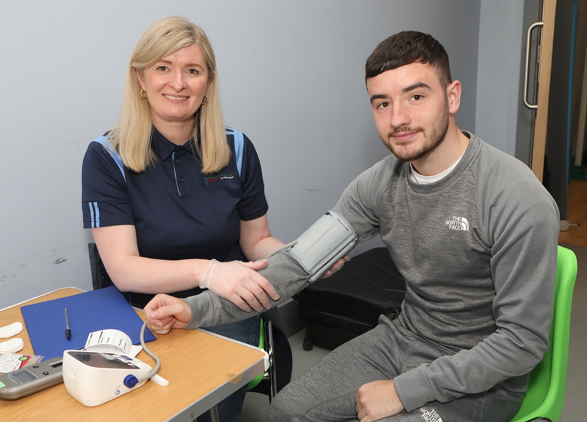 Conor McCourt having his blood pressure taken by Nora McGowan, BBHF. (Photo - Tom Heaney, nwpresspics)