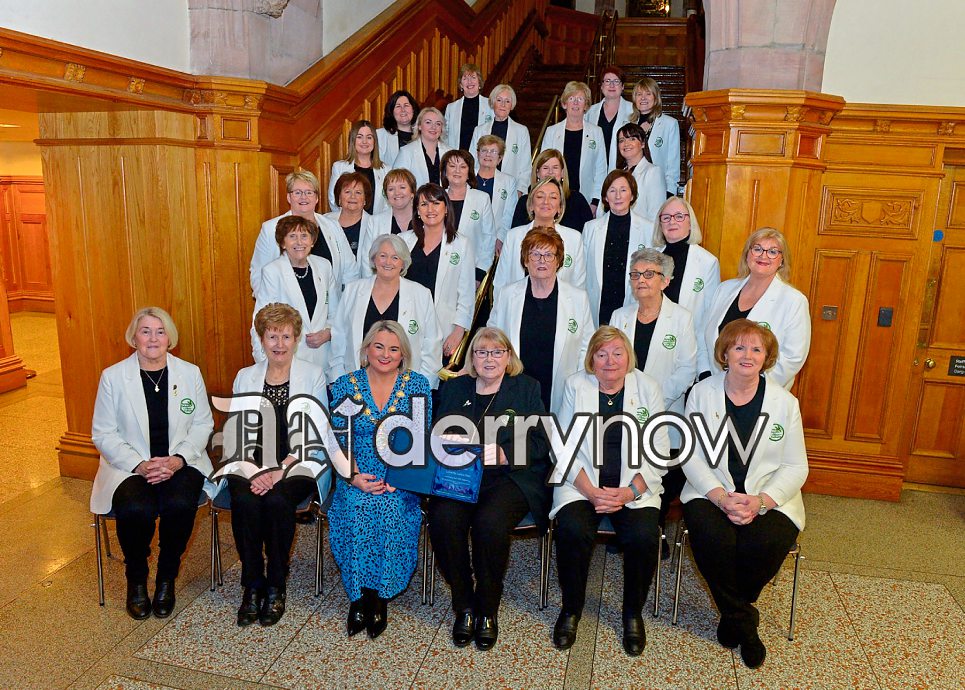 Mayor Sandra Duffy pictured with members of the Colmcille Ladies Choir at a reception held in the Guildhall.