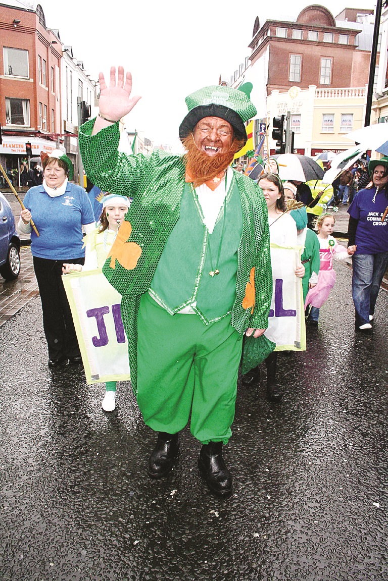 St. Patrick, aka Danny Ogle, waves for the camera.