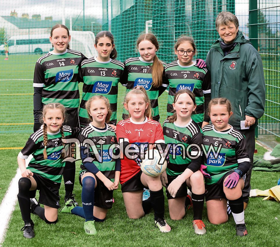 Greenhaw PS girls gaelic football team with teacher/coach Linda Heaney.