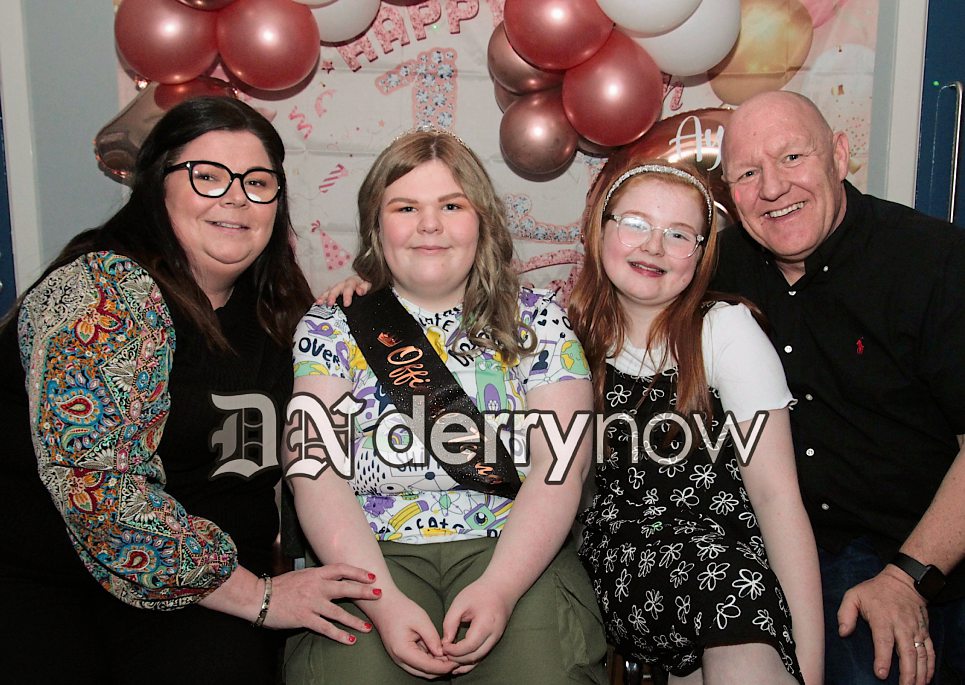 Aya pictured with her mammy Sharon, daddy Gary and sister Freya.