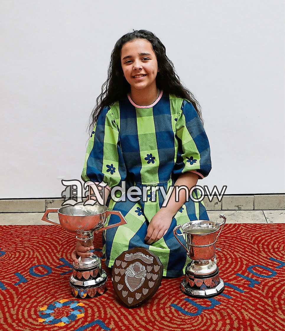 Lailah Keogh, winner Junior Any Song Cup, Set English Song, and Shield Set Poem, U12 years. (Photo - Tom Heaney, nwpresspics)