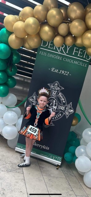 Dairsai Curran, 3rd place winner in the light jig and also 3rd place winner of the reel under 8s. Dairsai is a pupil off the Hegahty McKinney School off Irish Dance.