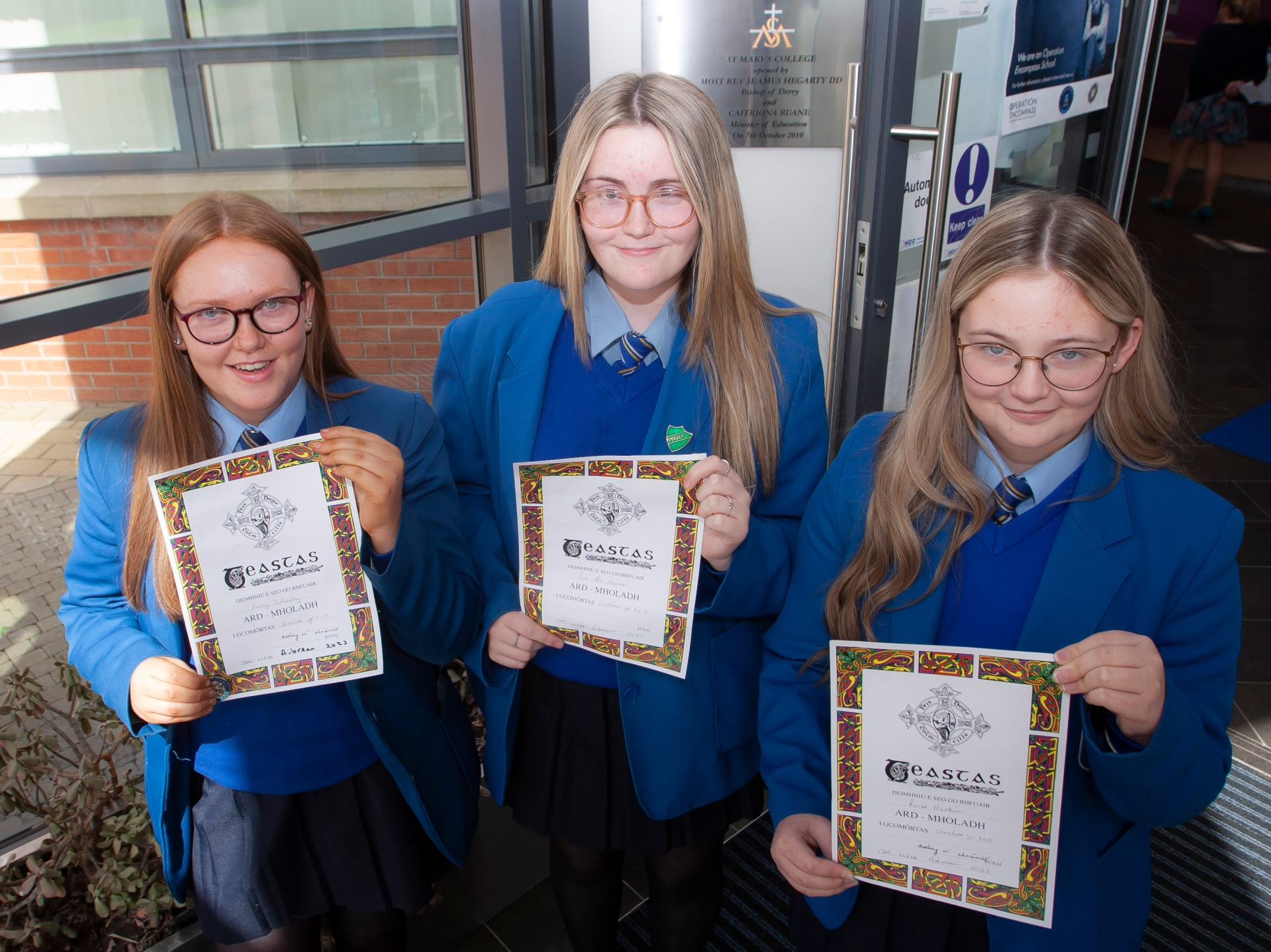 St. Mary’s College Irish Conversation Year 9-10 award winners at Feis Dhoire Cholmcille - From left, Lucy Doherty, Avan McGowan and Roma Harkin.