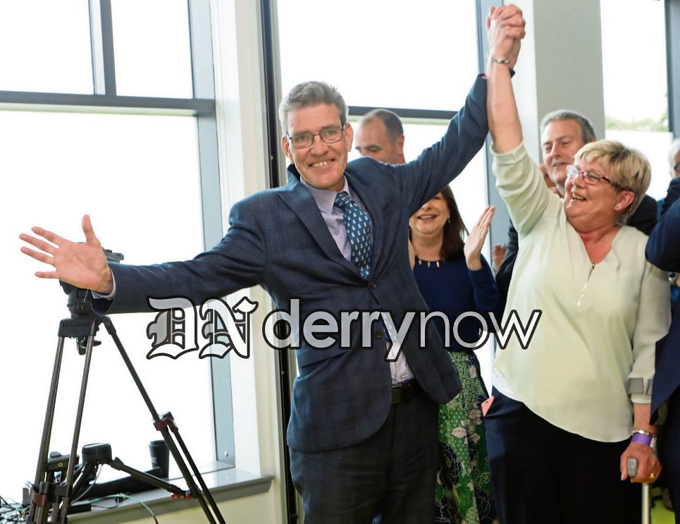 John Boyle celebrates his election with Deputy Mayor Angela Dobbins.