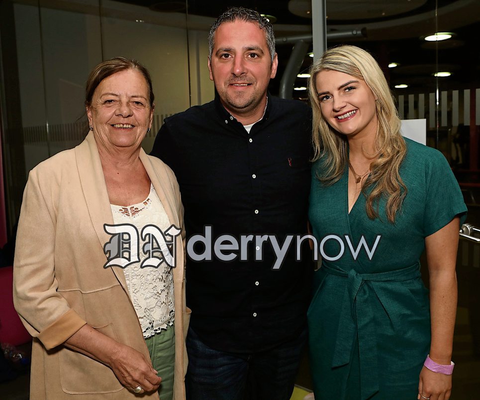 Former Sinn Fein Mayor Lynn Fleming with newly elected Sinn Fein councillors Christopher Jackson and Caitlin Deeney.