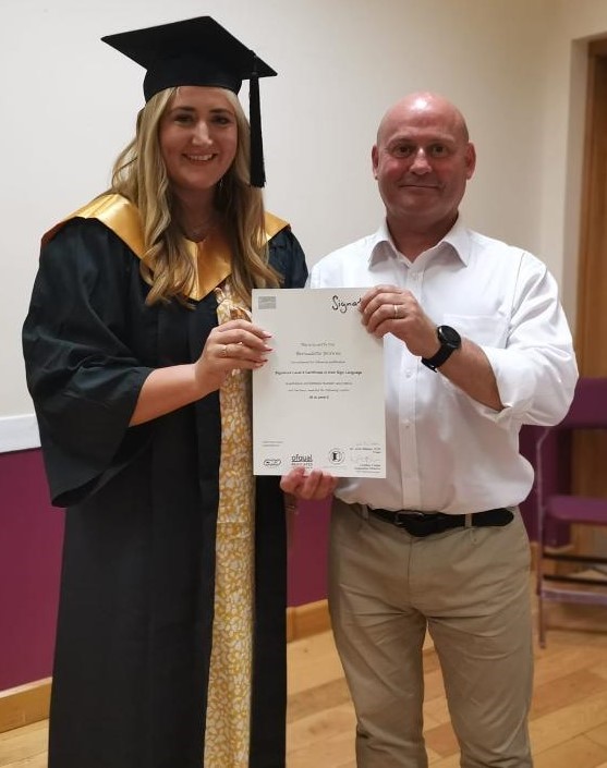 Tommy McAuley presenting Bernadette Brown with her level six certificate.