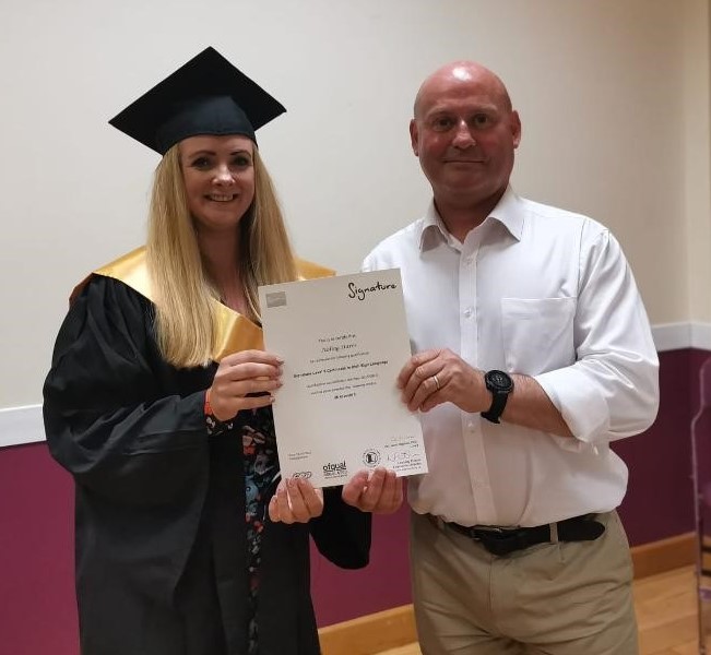 Aisling Starrs receiving her level six certificate from Tommy McAuley of the Department of Communities.