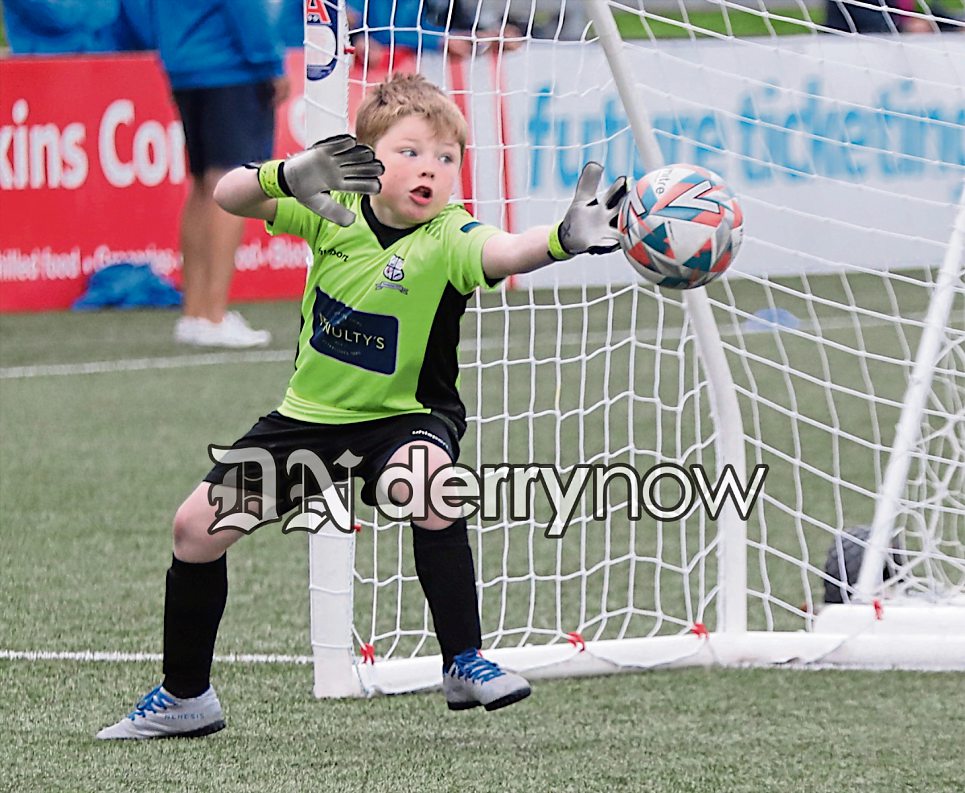 Newtown FC keeper reaches out to grab this ball in the u8 game against Core Soccer Academy.