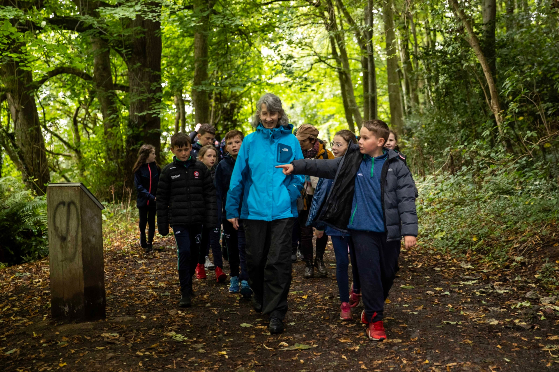 Volunteer Patricia Condron, with pupils from St Canice’s Primary School Feeny, in Mountsandel Wood.