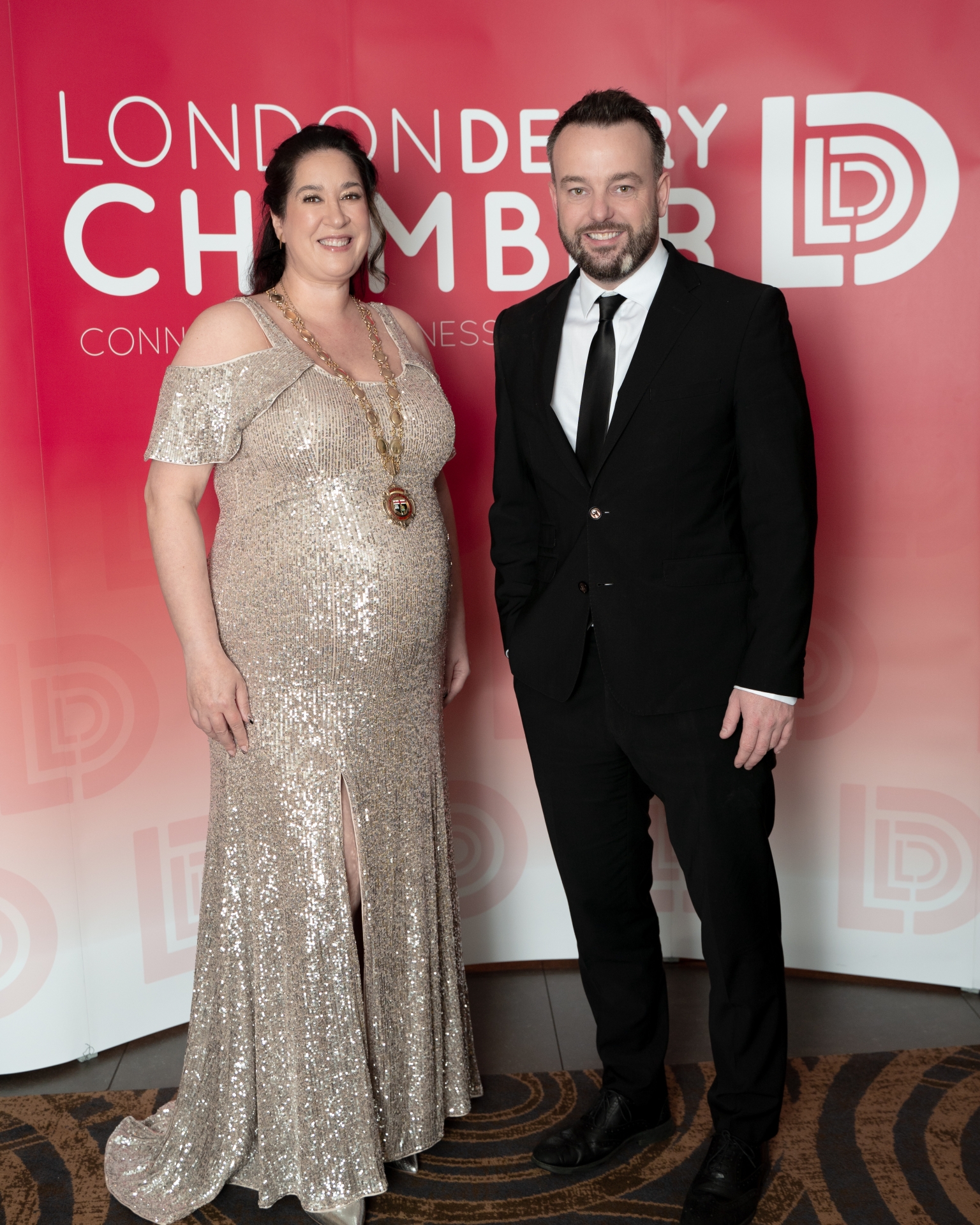 Chamber President Selina Horshi and SDLP Leader Colum Eastwood.