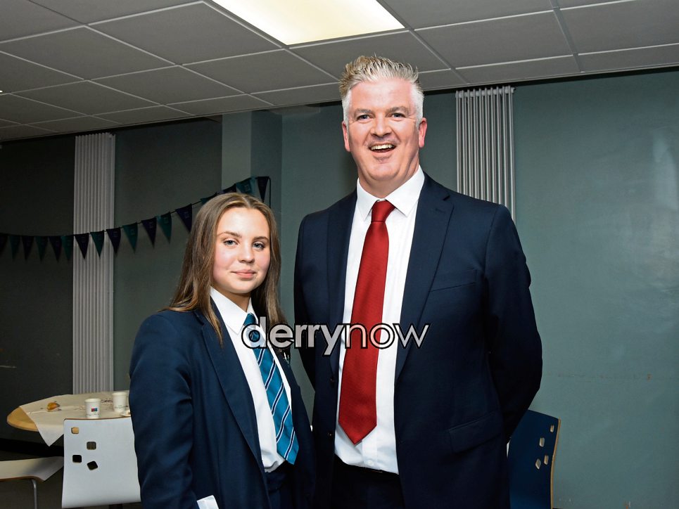 Head Girl Cait McCloskey and Principal Philip McCullagh.