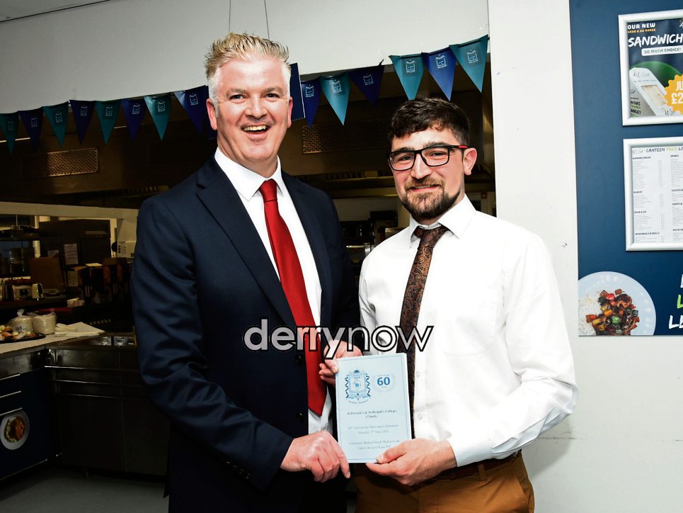 SPB College Principal Philip McCullagh with former pupil and current teacher Conal White.