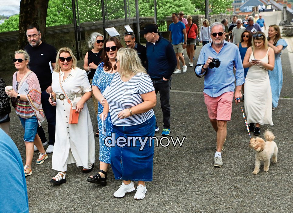 A section of the walkers on a walk around Derry Walls to commemorate her late husband's life.