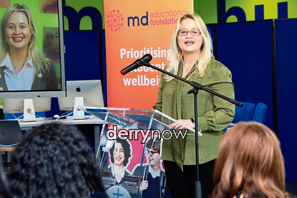 Emma McCartney, Wellbeing lead, St. Mary's College, speaking at the official opening of the Wellbeing Hub in the college.