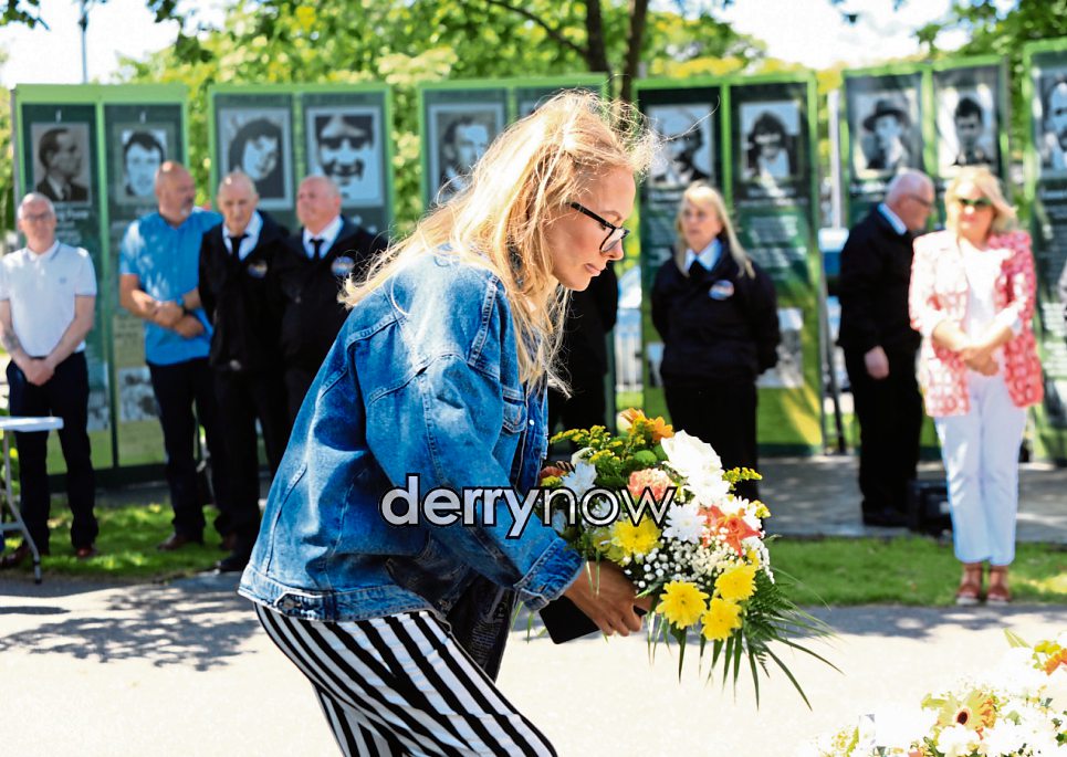A family member laying a wreath at the Shantallow Republican Monument to mark the 50th anniversary of Vols Gerard Craig and David Russell.