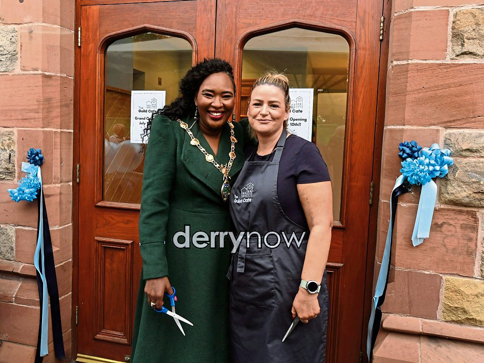 Mayor Lilian Seenoi Barr and Alicia Graham, proprietor, pictured at the opening of the Guild Cafe.