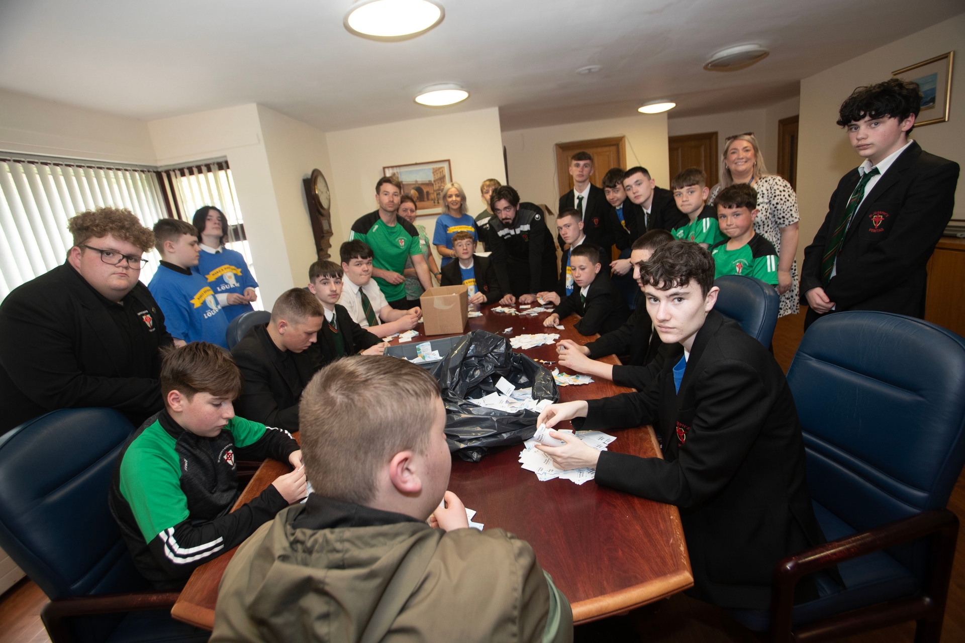St. Joseph's staff and pupils helping out at the Foyle Hospice during the 'Good Deeds Bus' visit.