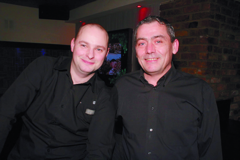Dungloe Bar & Tracey's Bar proprietor Kevin Daly with Mickey McGuinness.