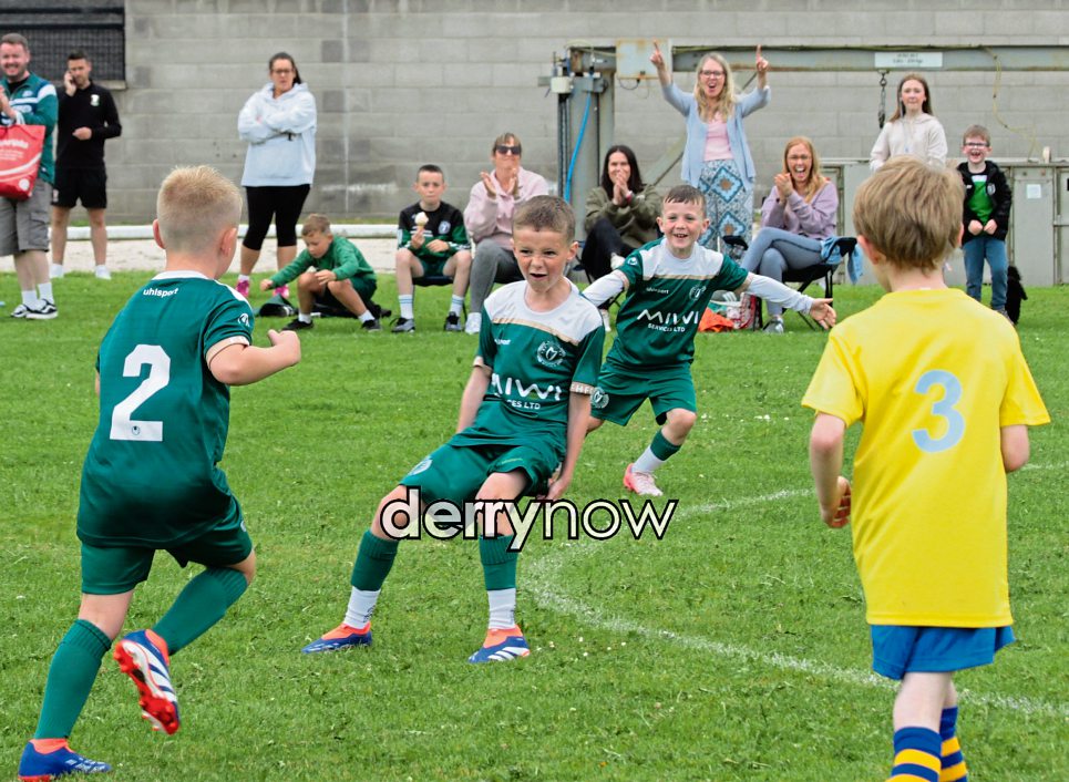 Foyle Harps players goal celebration against Gleneely U8 Foyle Cup at the Brandywell. (Photos - Deirdre Heaney, nwpresspics)