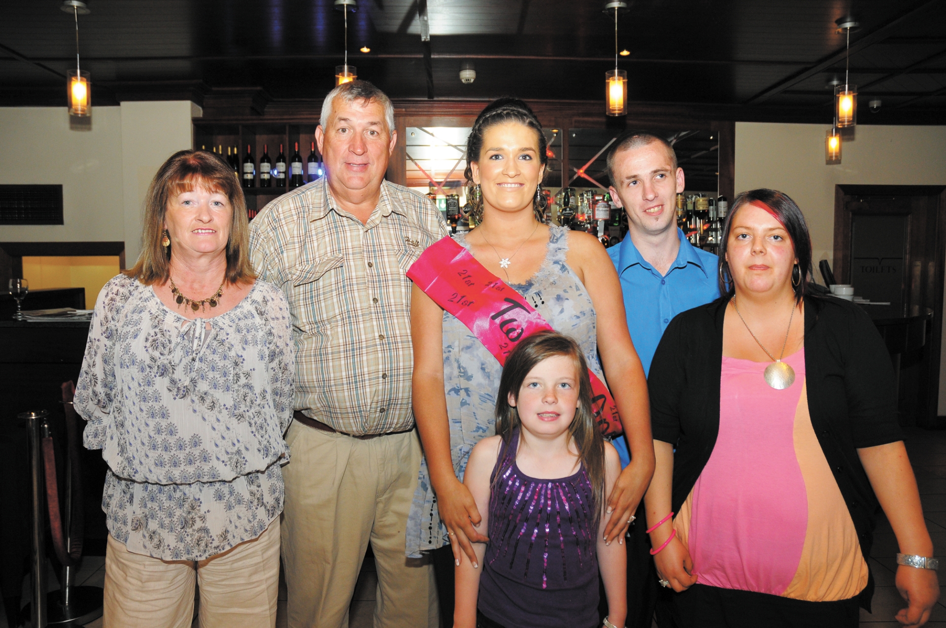 Tracy pictured with her parents Teresa, Dermott, her brother Paul, Lisa and Courtney.